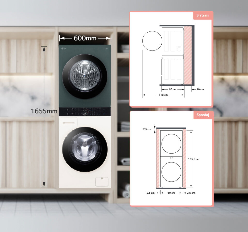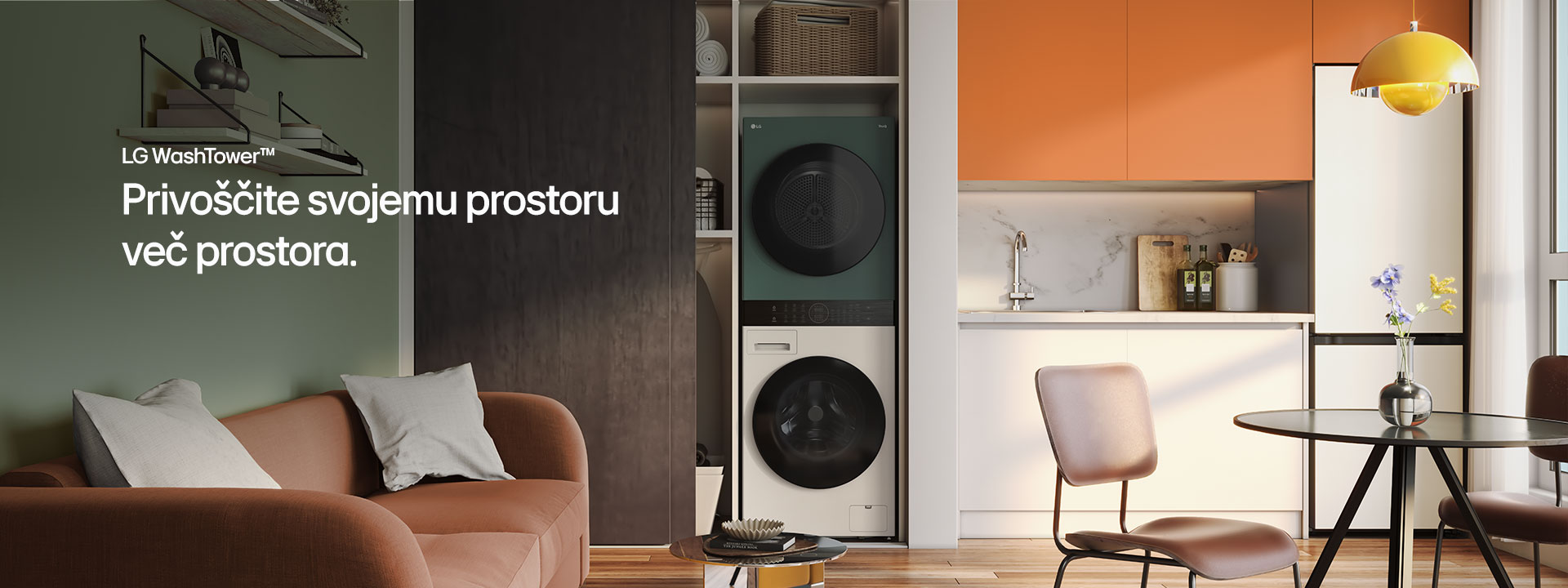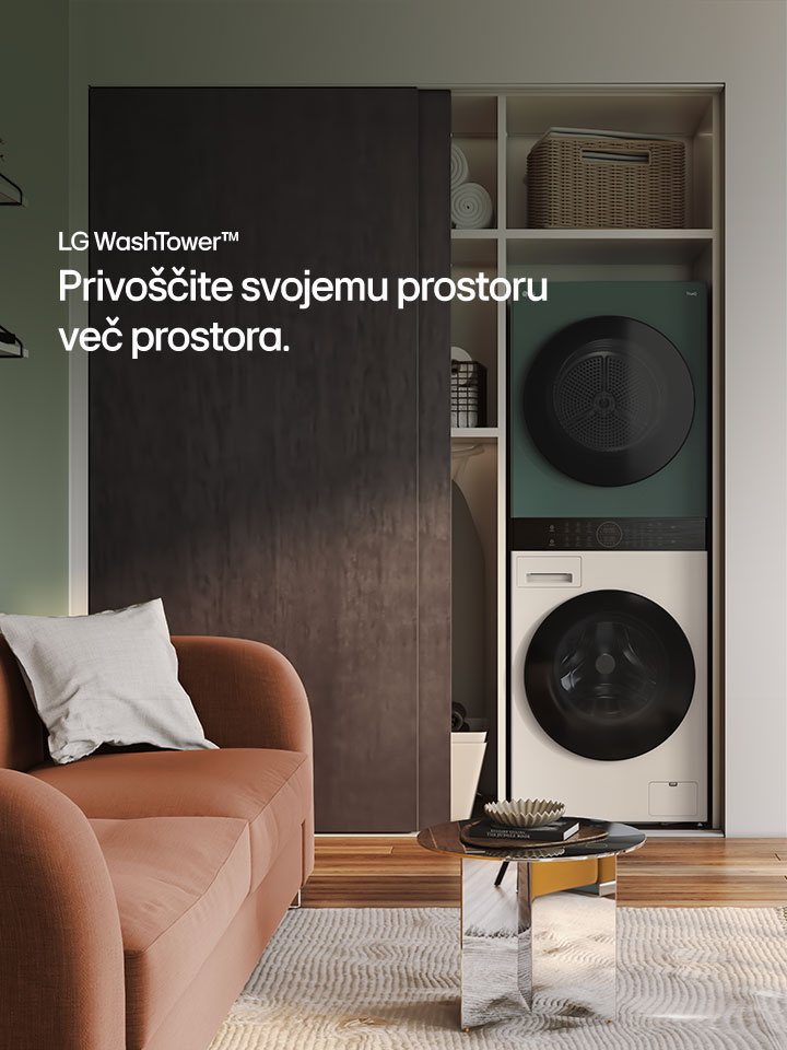 Odkrijte LG WashTower™ – pralni in sušilni stroj v eni napravi. Sušilni stroj je pametno nameščen nad pralnim, kar prihrani prostor in prinaša maksimalno udobje. Ta inovativna rešitev združuje učinkovitost, pametno tehnologijo in vrhunsko zasnovo ter postavlja nove standarde pri pranju perila.